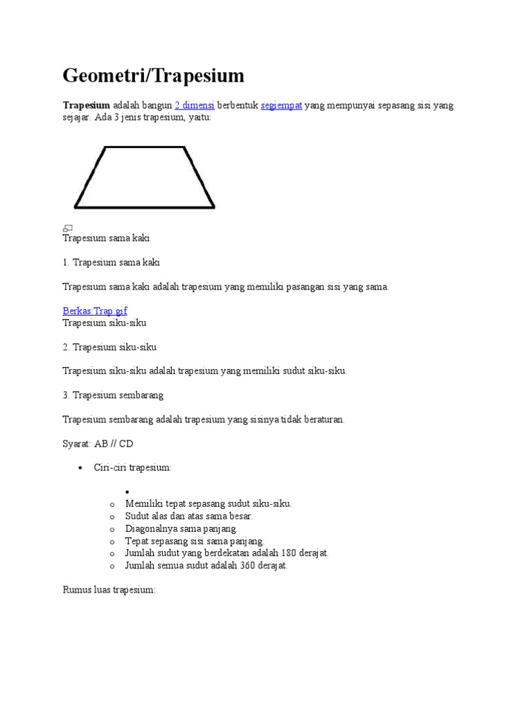 Pengertian Sifat Sifat Dan Macam Macam Jenis Trapesium Serta Rumus Luas Dan Keliling Trapesium Dilengkapi Dengan Contoh Soalnya Berpendidikan Com