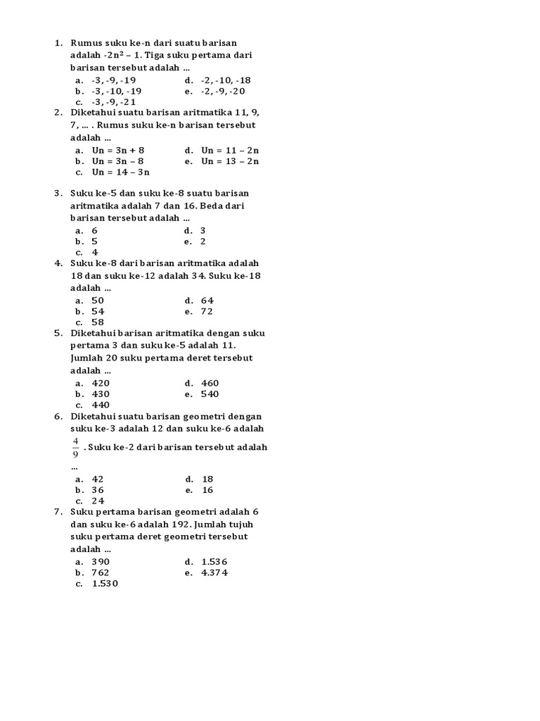 Bilangan Terkecil Adalah Diket 1 3 5 7 Jumlah Soal Banyak Soal 16 Menentukan Suku Ke N Da Dan Dg A Deret Barisan Aritmatika Jumlah 3 Bilangan Barisan Aritmatika Pdf Document