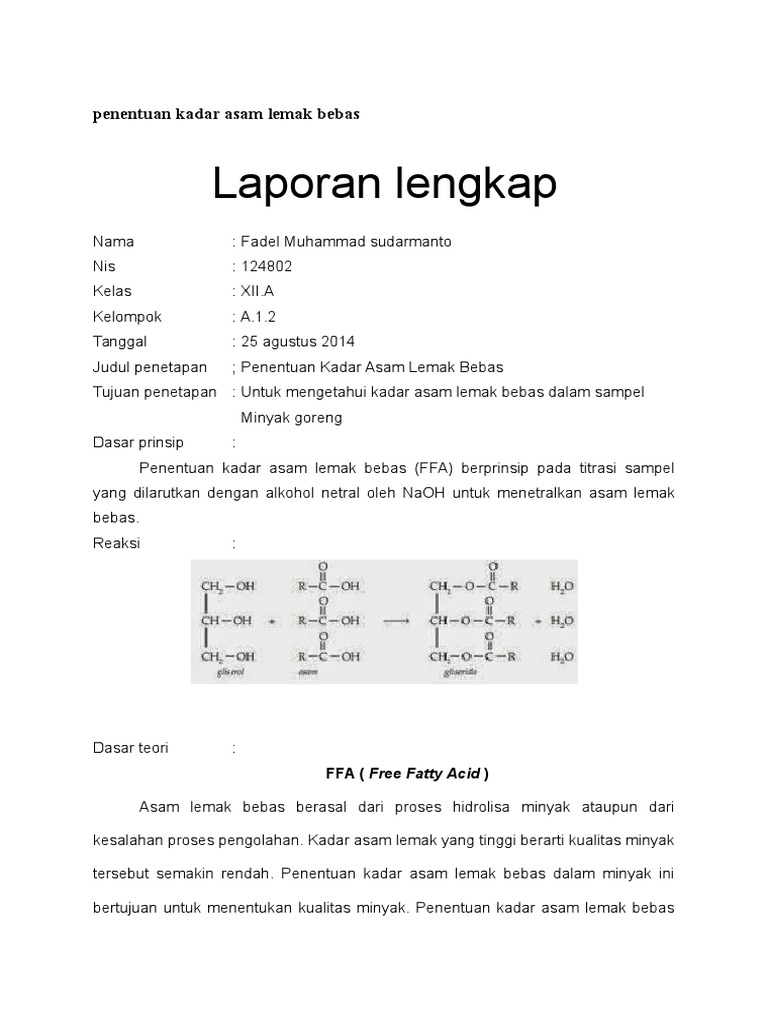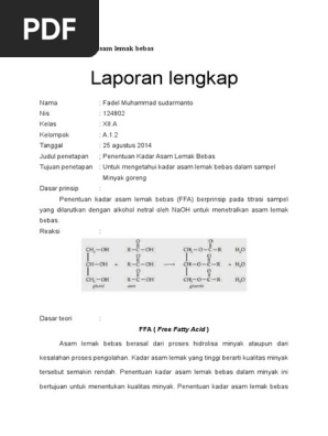Penentuan Kadar Air Dan Asam Lemak Bebas Pada Cpo Crude Palm Oil Di Pks Pt Multimas Nabati Asahan Kuala Tanjung