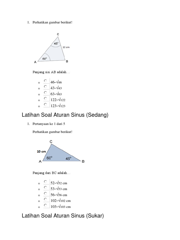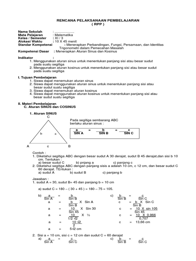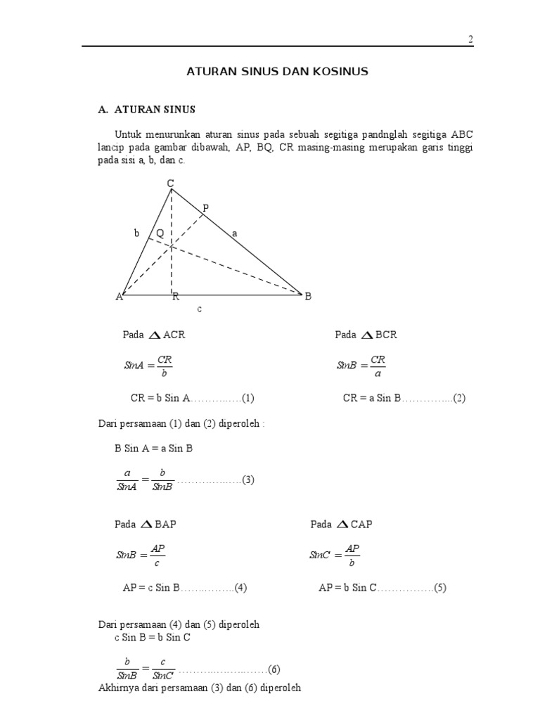 Contoh Soal Aturan Sinus Cosinus Luas Segitiga Trigonometri