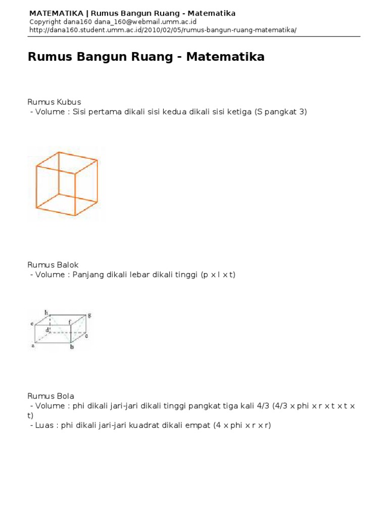 Rumus Bangun Ruang 3d Lengkap Dengan Gambarnya
