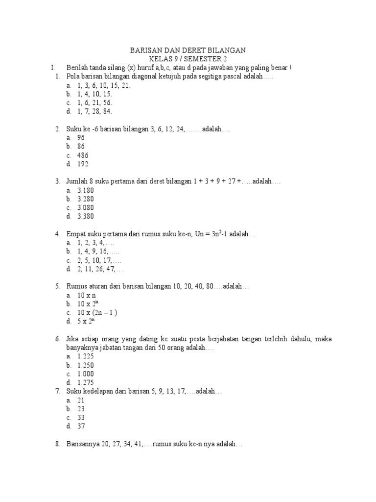 Contoh Soal Barisan Deret Aritmatika Pilihan Ganda Pembahasan