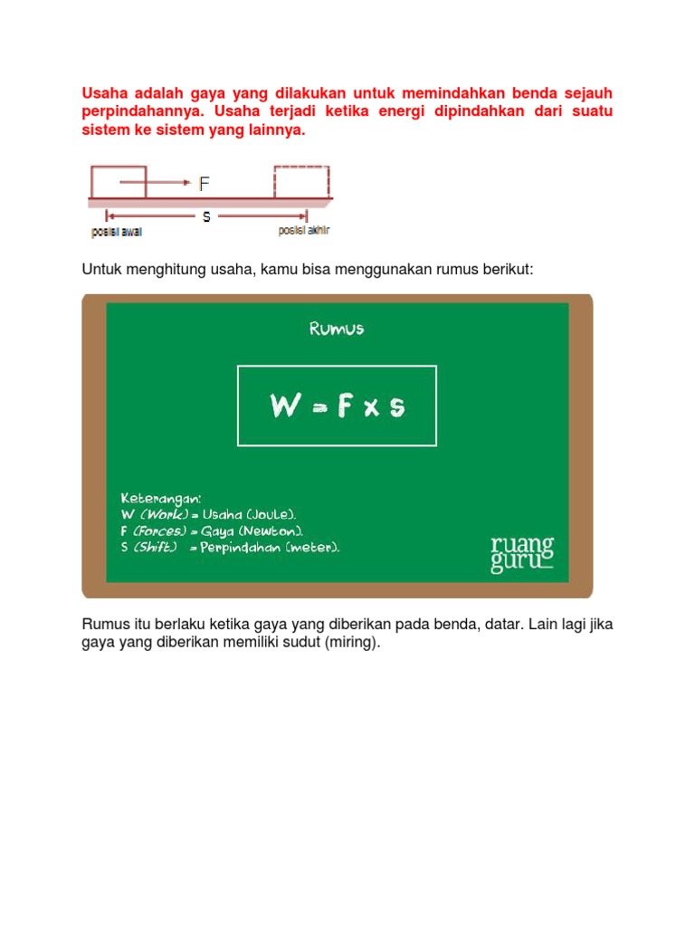 Pengertian Usaha Dan Energi Daya Rumus Potensial Hukum Kekekalan Energi Mekanik Efisiensi Contoh Soal Kunci Jawaban