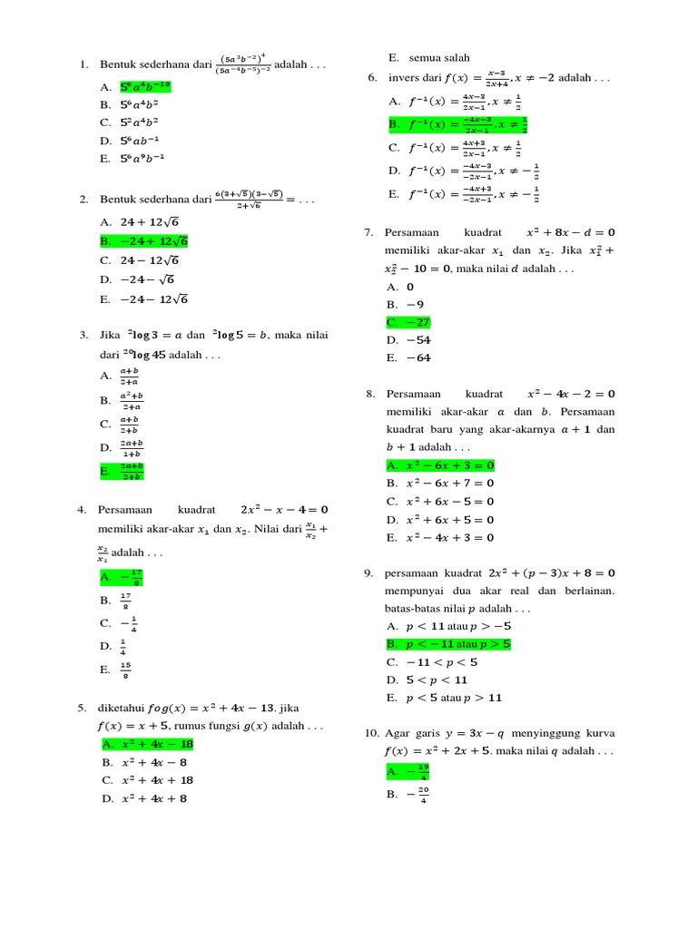 Kumpulan rumus matematika lengkap pada dasarnya merupakan kunci untuk dapat menjawab soal soal matematika. 14 bentuk sederhana dari a. Pembahasan menyederhanakan bentuk pangkat soal no.