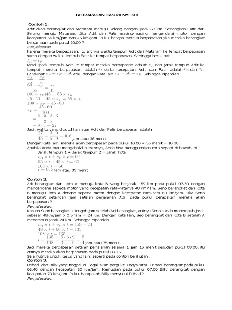 Berpapasan Dan Menyusul Cara Cepat Contoh Soal Download Latihan Soal