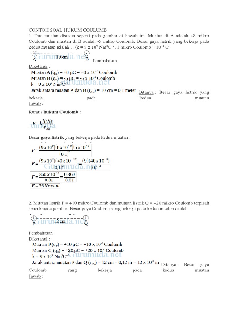 Coulomb Hukum Gaya Elektrostatik Konstanta Rumus Soal Jawaban