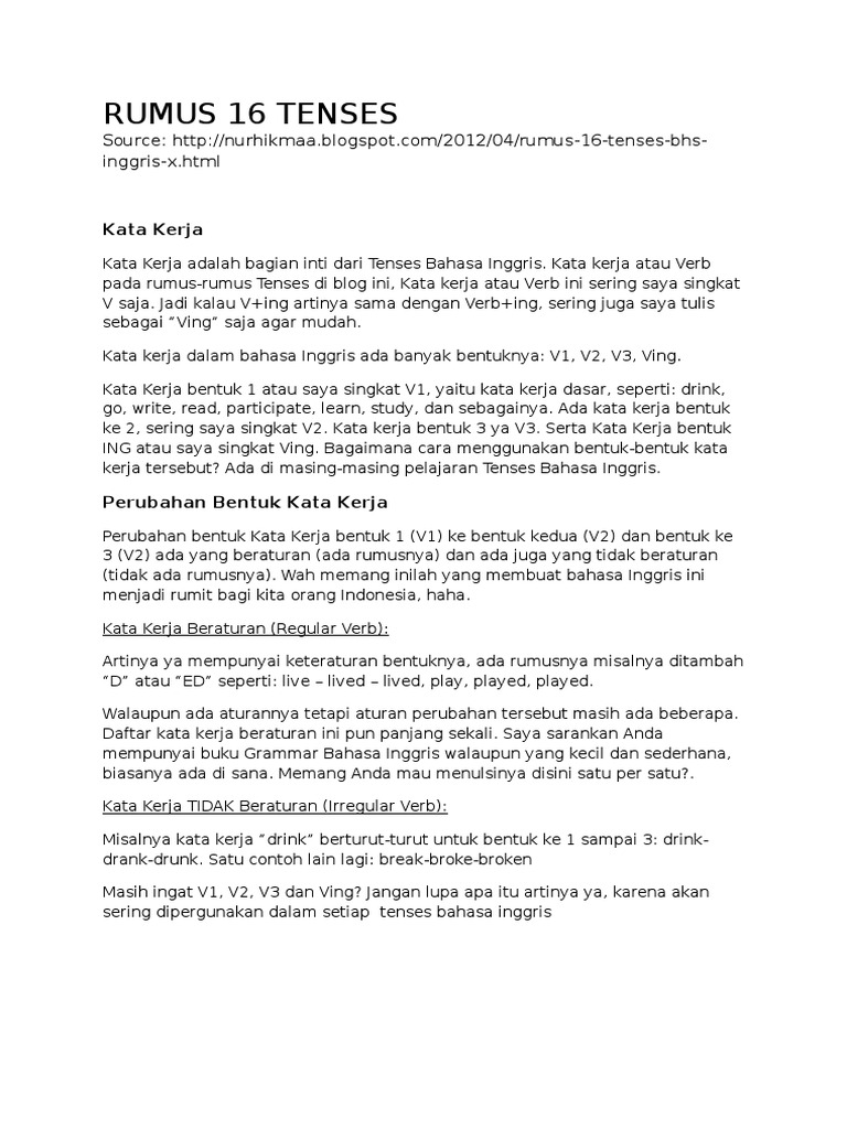 Doc 6 Tenses Dalam Bahasa Inggris Lengkap Dengan Rumus Dan Contoh Kalimatnya Jaki Jaka Academia Edu
