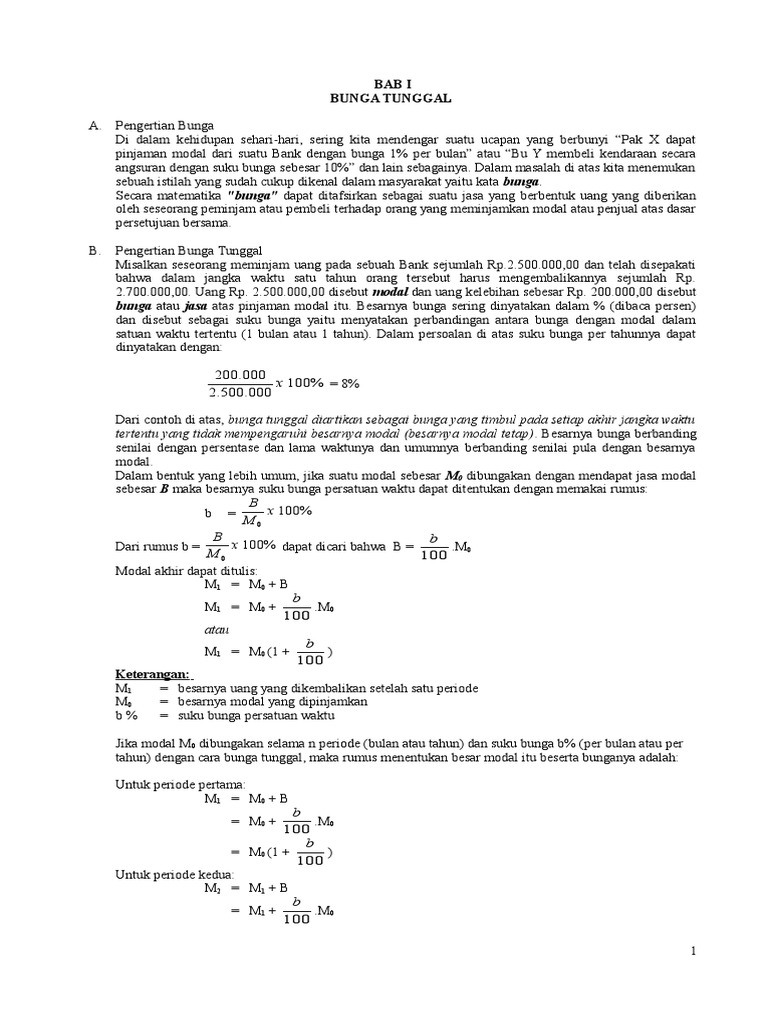 Bunga Tunggal Dan Bunga Majemuk Viewmetode Persen Yang Sebanding Digunakan Jika Suku Bunga Bukan Merupakan Pembagi Habis 360 Sebab Dengan Metode Ini Satu Tahun Dihitung 360 Hari Doc Document
