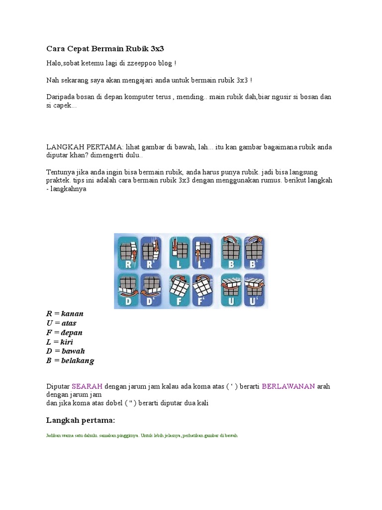 Rumus Lengkap Cara Bermain Rubik 3x3 Pdf Document