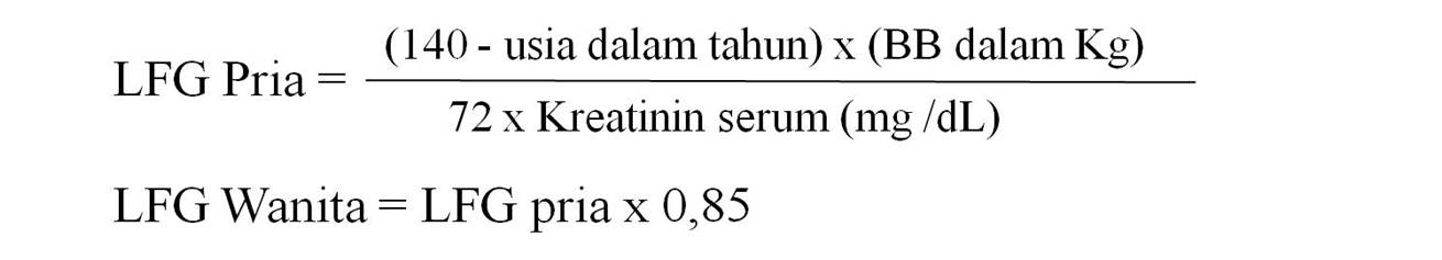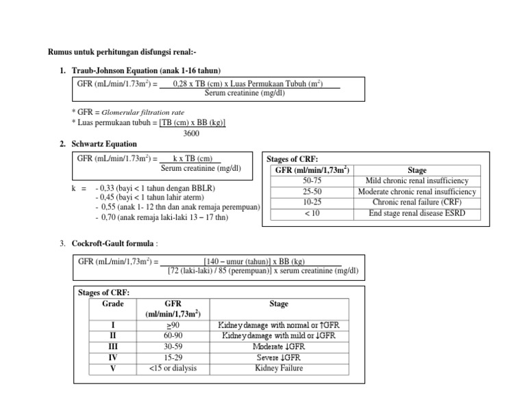 Dalam penentuan ini rumus yang lazim dipakai adalah rumus cockcroft and gault. Umur umur tahun bb berat badan kg scr konsentrasi serum kreatinin mg persamaan ini hanya dapat digunakan pada pasien dengan kriteria. Stadium yang lebih tinggi menunjukkan nilai laju filtrasi glomerulus yang lebih rendah.