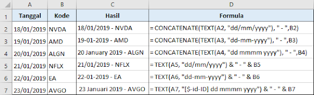 Concatenate Ampersand Menggabungkan Beberapa Format Text Angka Tanggal Pada Ms Excel