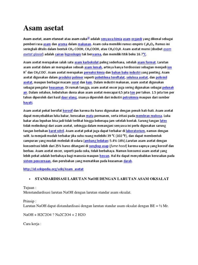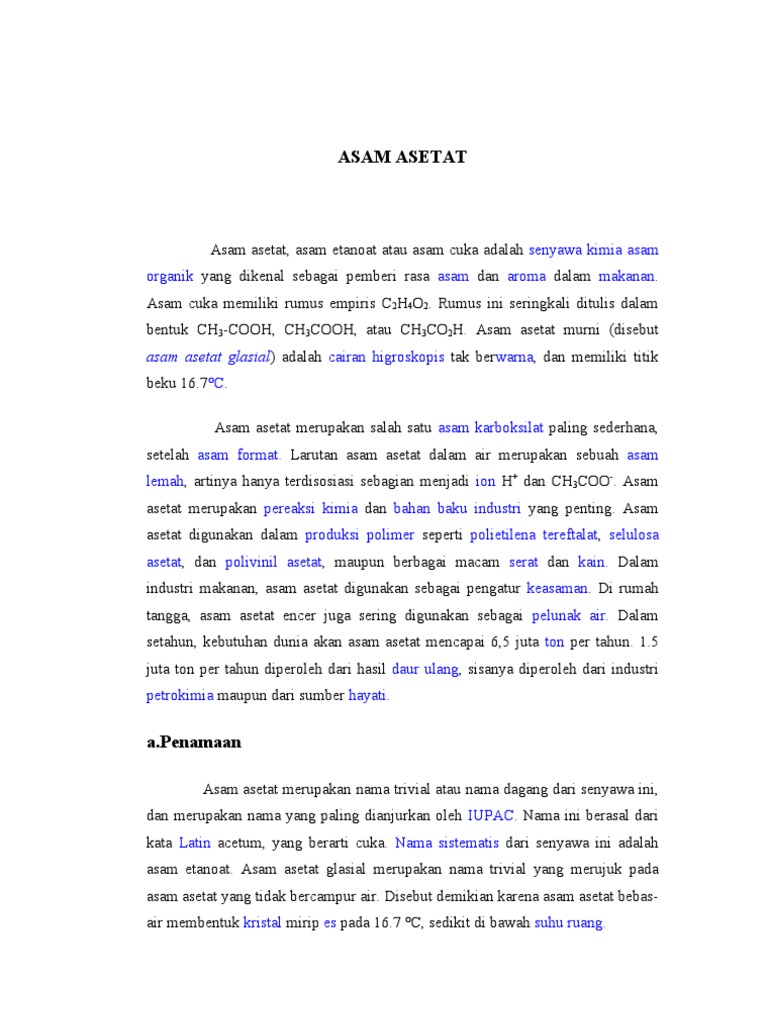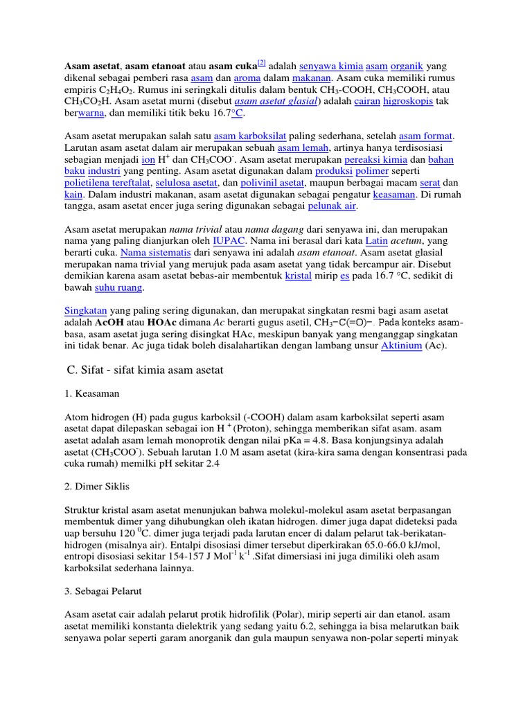 Asam Asetat Pengertian Rumus Reaksi Bahaya Dan Sifatnya