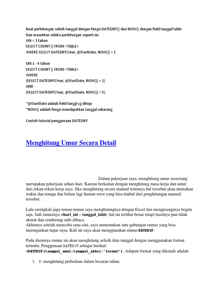 Fungsi Datedif