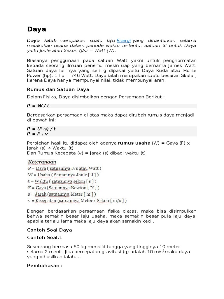 Dimensi Daya Pengertian Lambang Rumus Contoh Lengkap