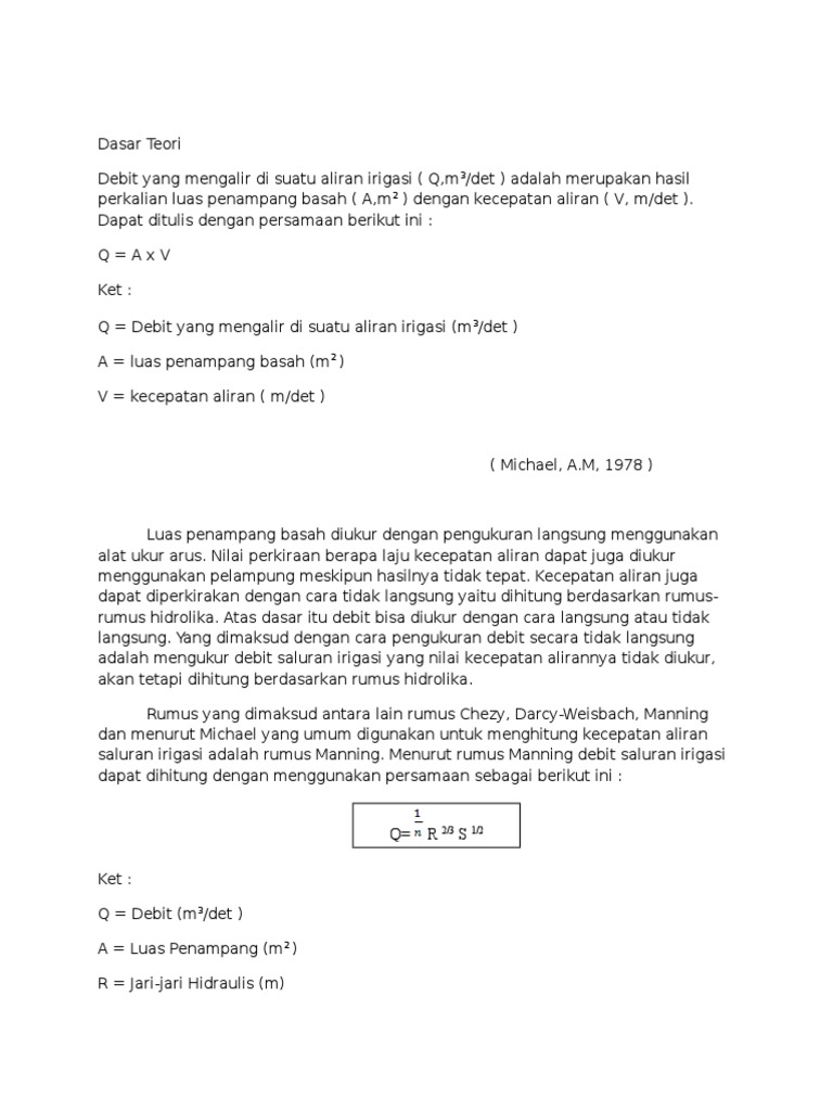 Menghitung Kecepatan Aliran Saluran Terbuka Pada Aliran Uniform Ir Darmadi Mt S Blog