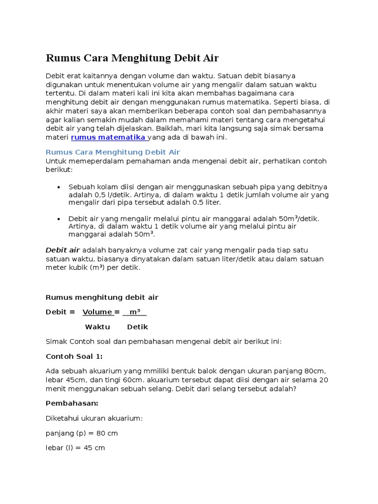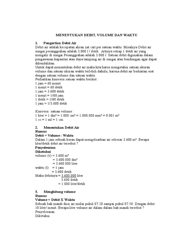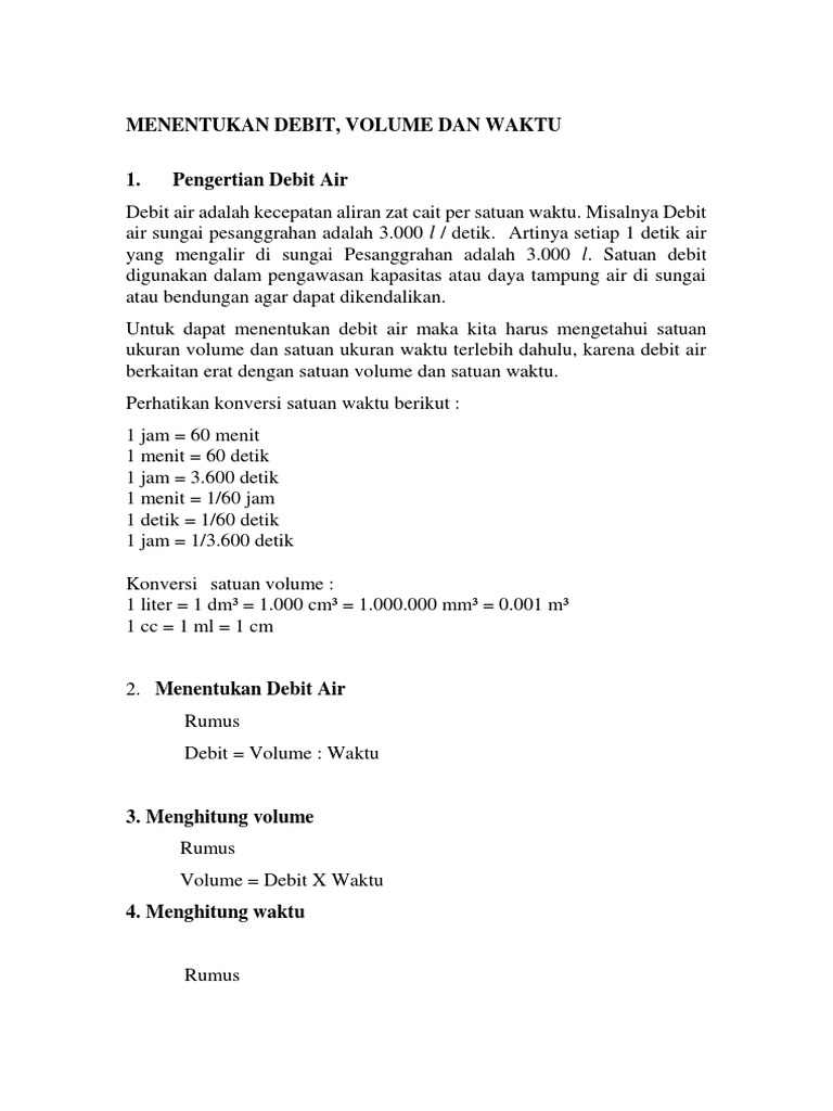 41 Cara Mudah Menghitung Debit Volume Dan Waktu Anak Kreatif Berprestasi Wa 0818 22 0898