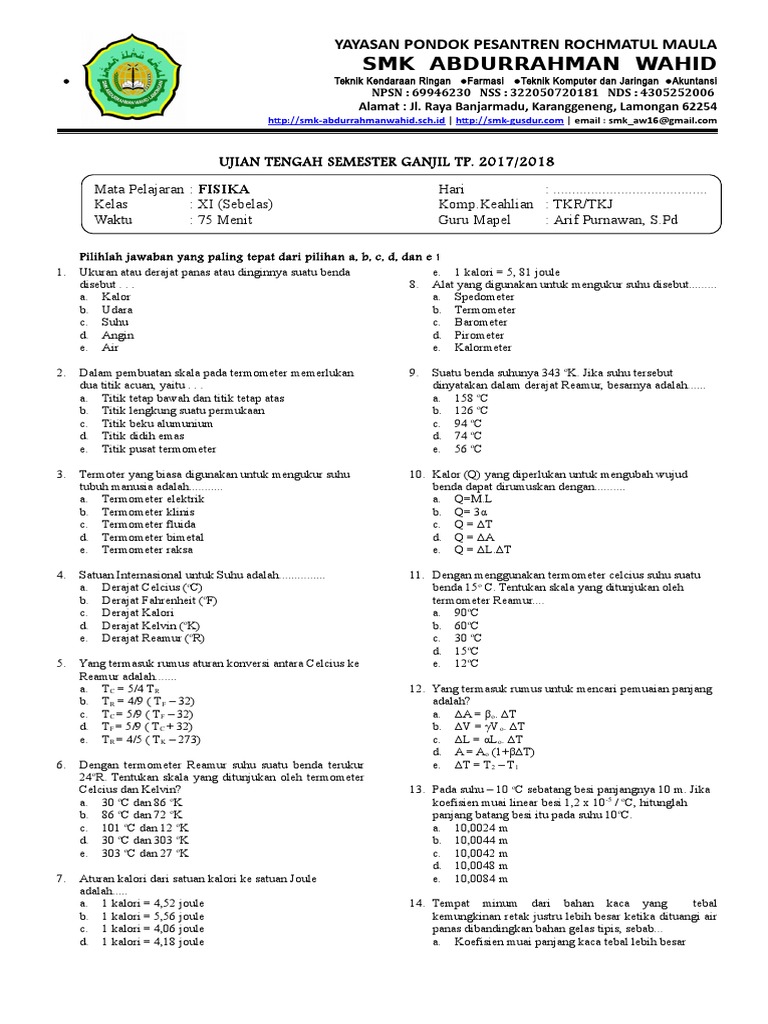 Faitha Fatul Blog Soal Dan Pembahasan Materi Suhu Dan Pemuaian Smp Kelas Viii Paket 1