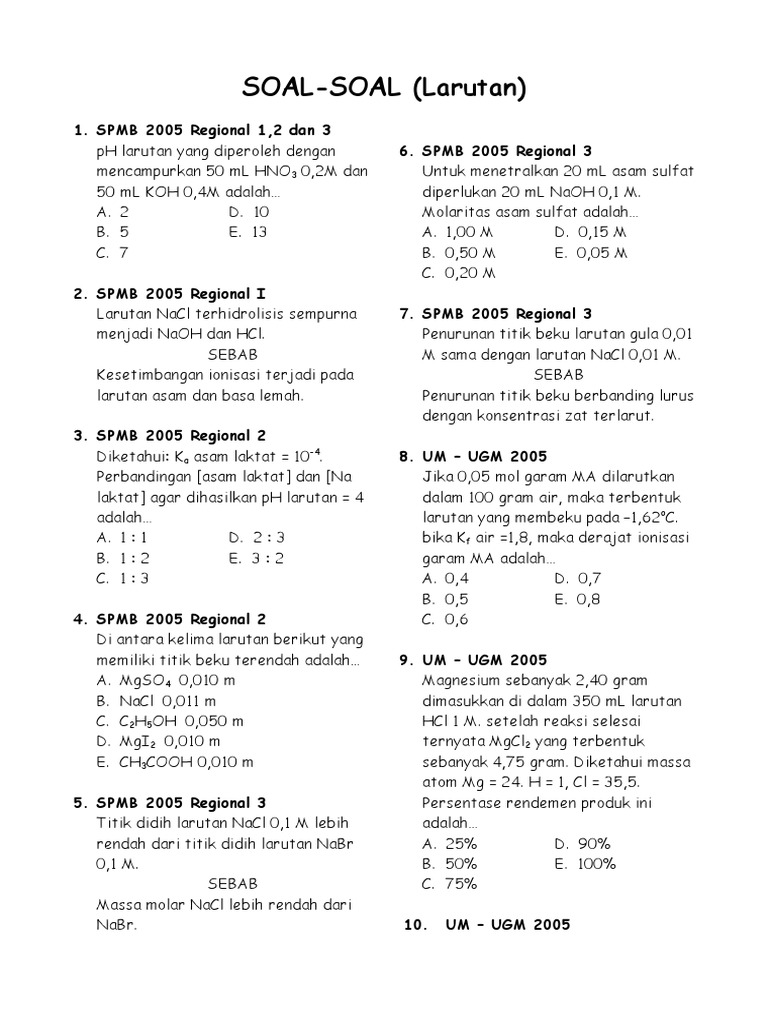 Gula 0 1 Mol Dan 0 1 Mol Garam Lx Dengan Derajat Ionisasi 0 5 Masing Masing Dilarutkan Dalam 1 Brainly Co Id