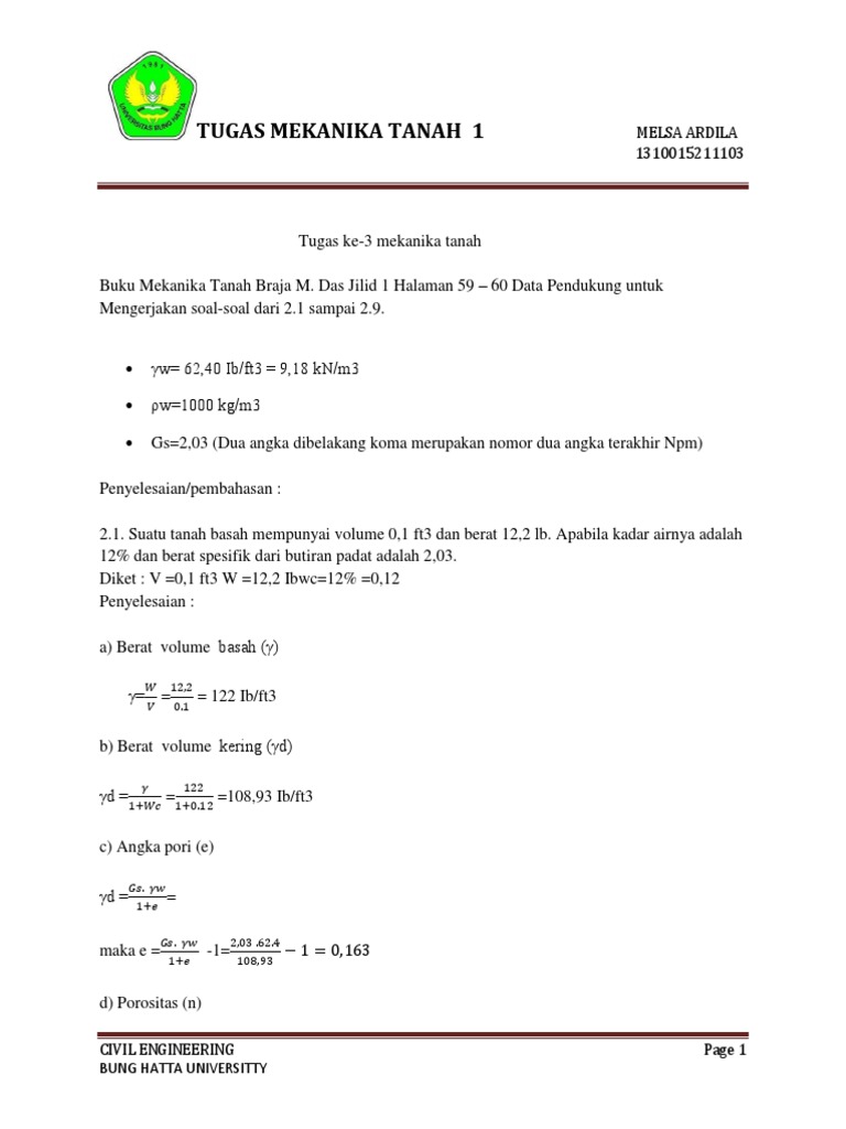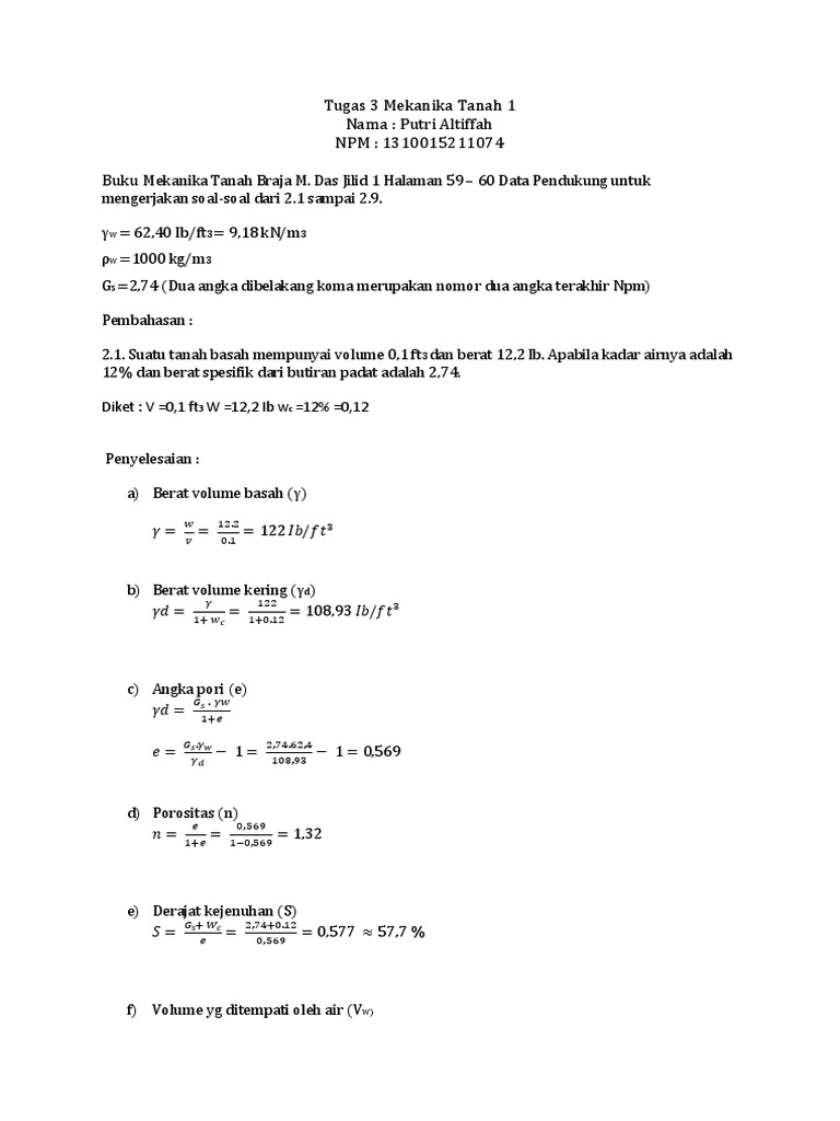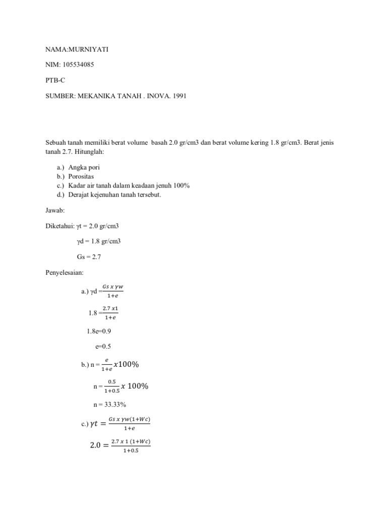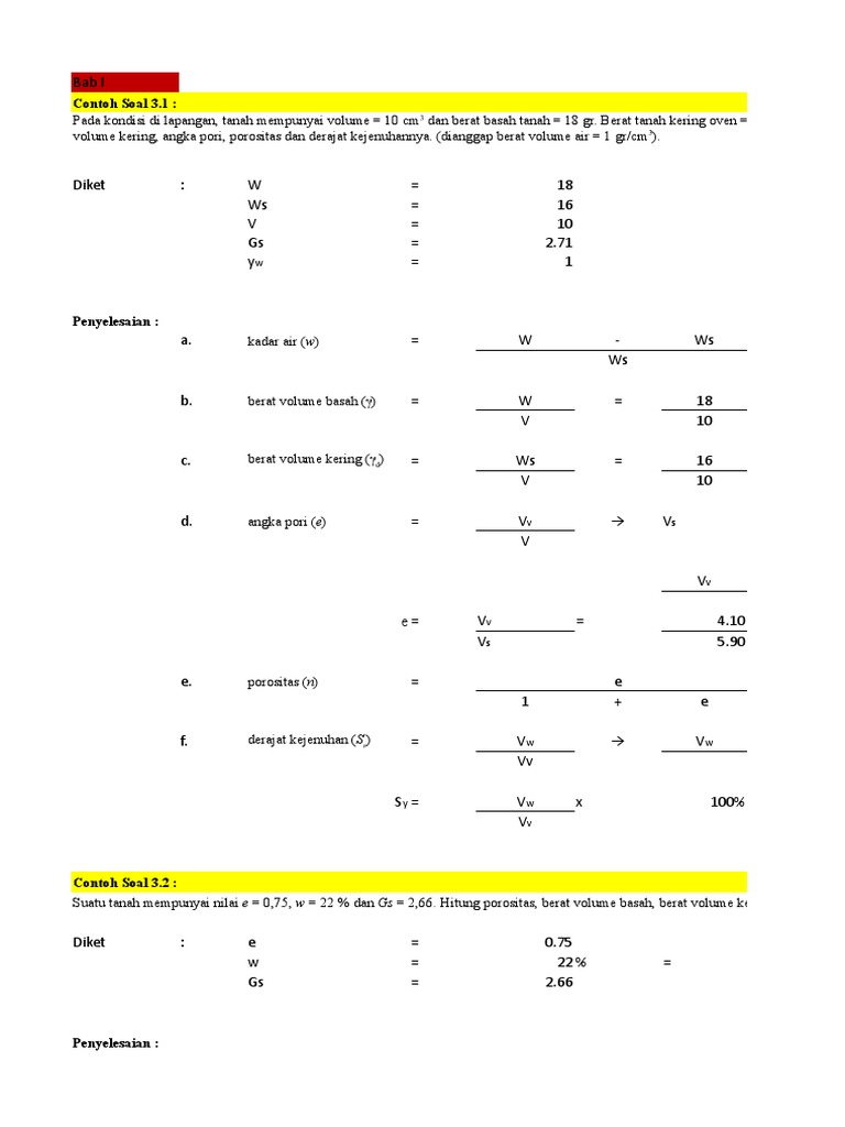 Contoh Soal Dan Jawaban Geoteknik Cara Menentukan Kadar Air Kepadatan Basah Kepadatan Kering Angka Pori Porositas Dan Derajat Kejenuhan Helm Proyeku