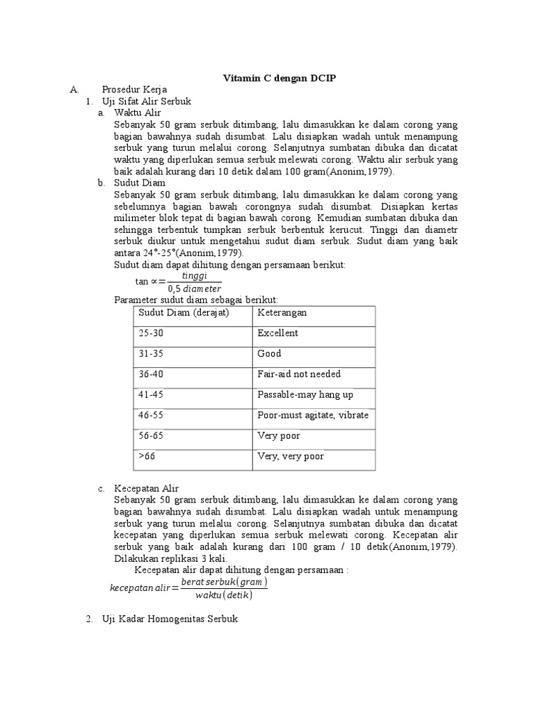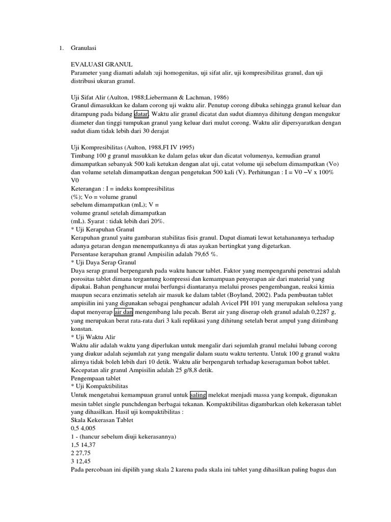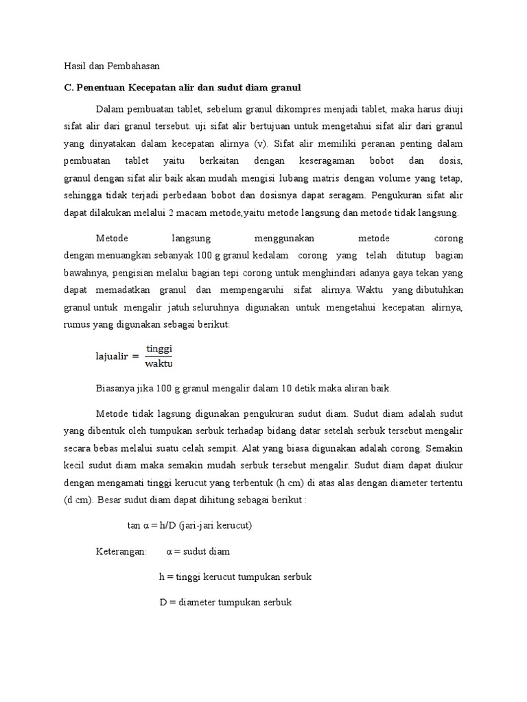 Formulasi Dan Teknologi Sediaan Solida Tentang Pengaruh Terhadap Uji Sifat Alir Dan Sudut Istirahat