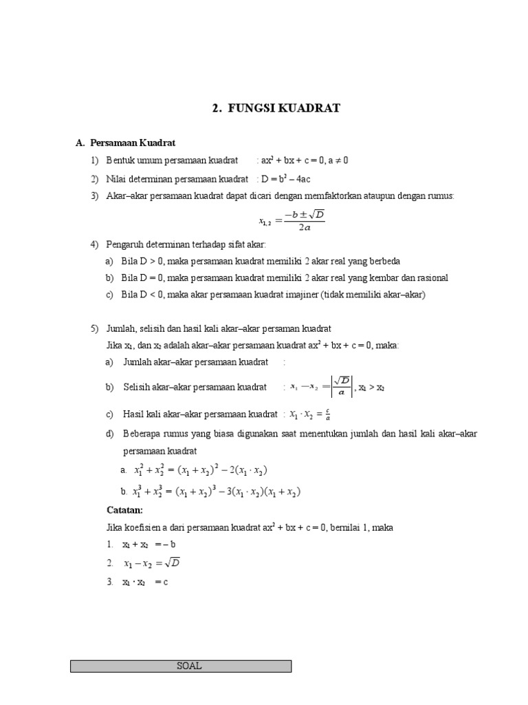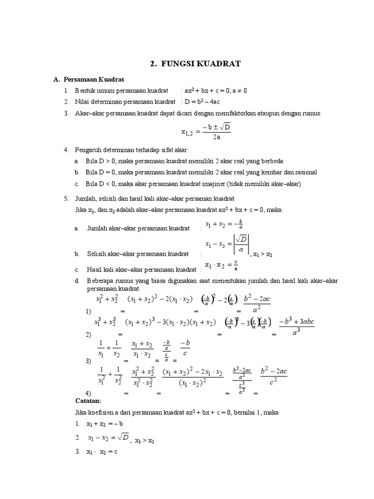 Rumus Jumlah Dan Hasil Kali Persamaan Kuadrat