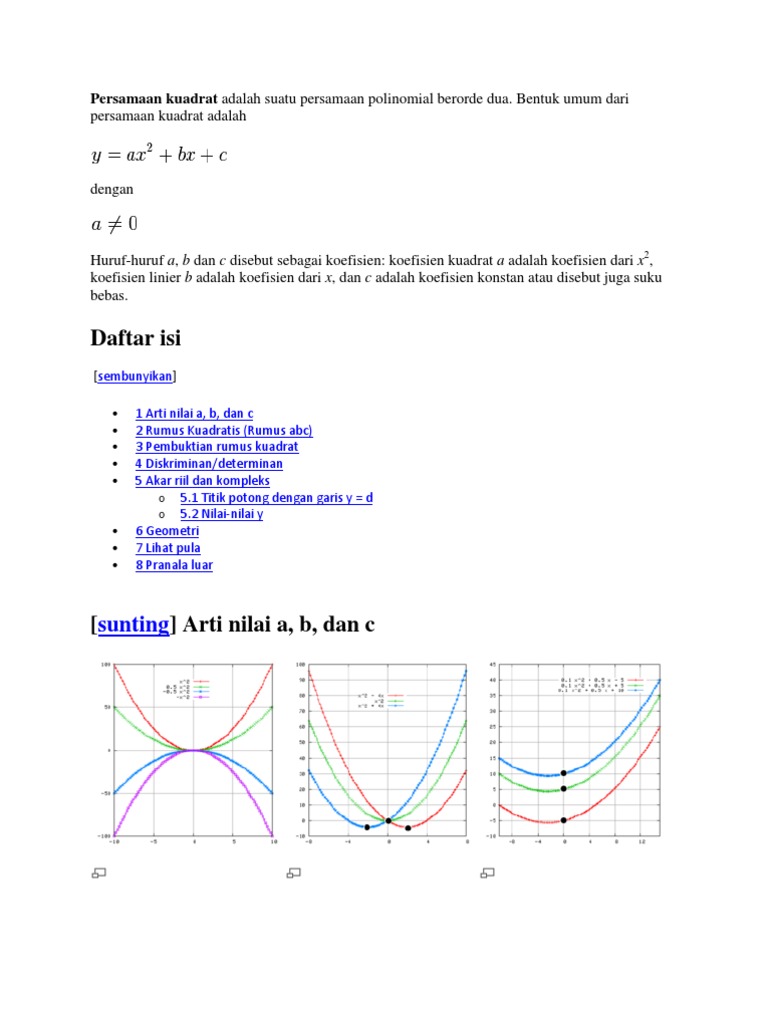 Persamaan Kuadrat Wikipedia Bahasa Indonesia Ensiklopedia Bebas