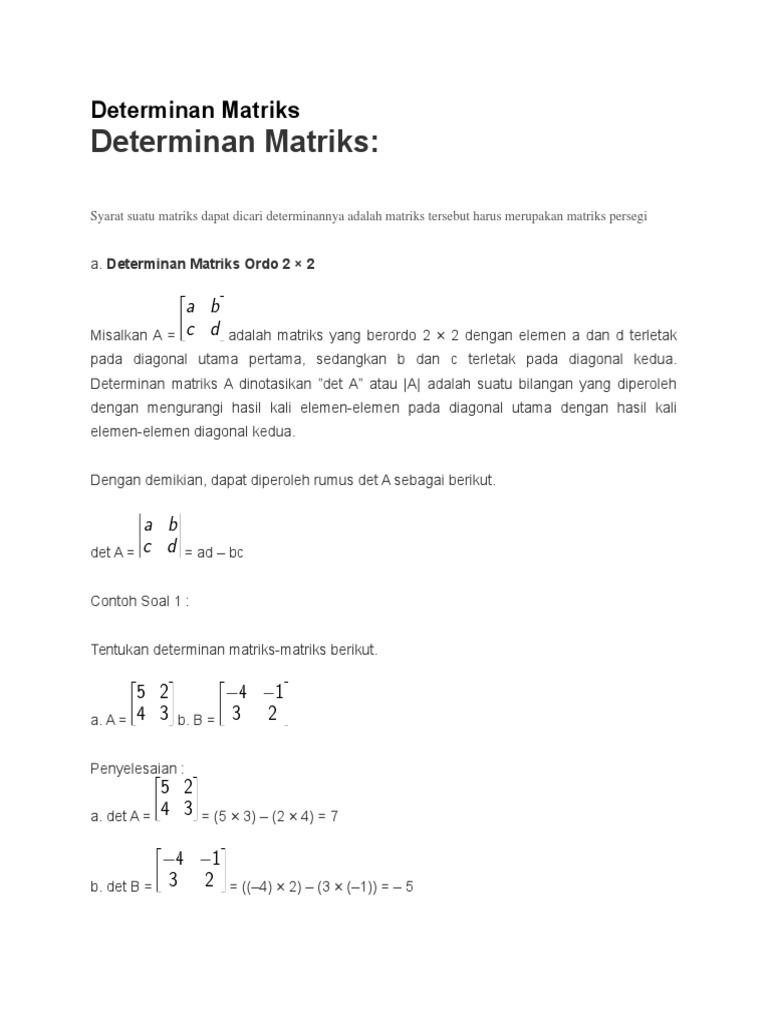 Rumus Determinan Matriks Ordo 3 Rumushitung Com