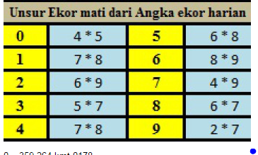 Tabel T2 Untuk Mencari Ekor Mati Prediksi Pola Serang Togel Hongkong Facebook