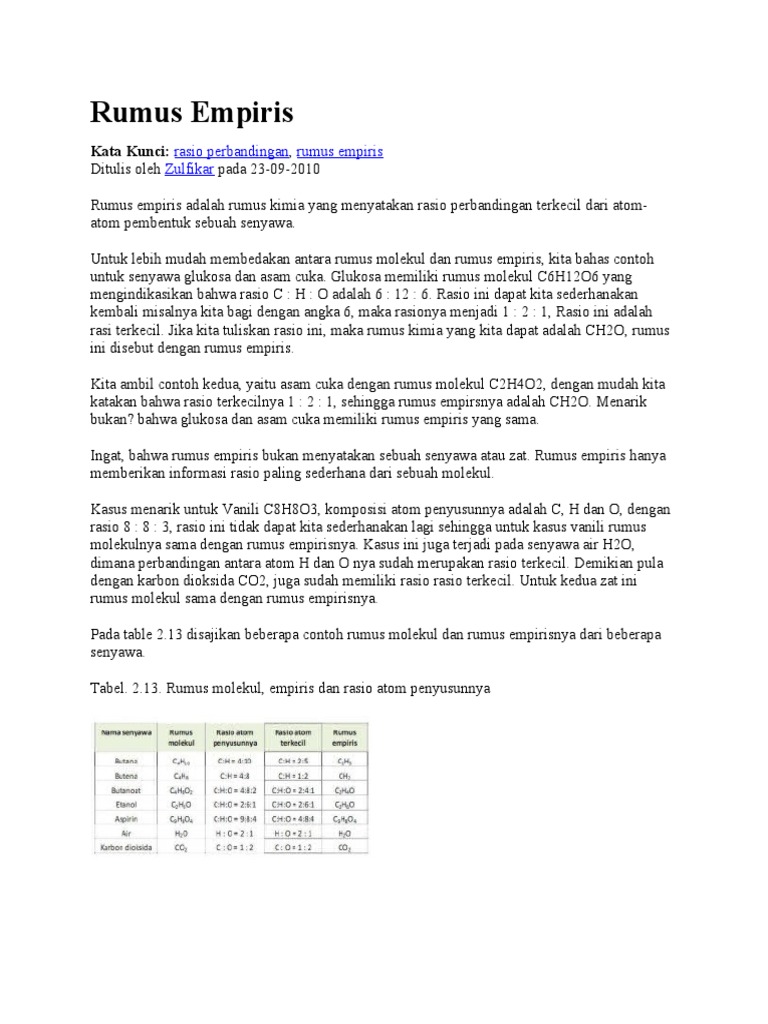 Rumus Empiris Dan Rumus Molekul Docx Document