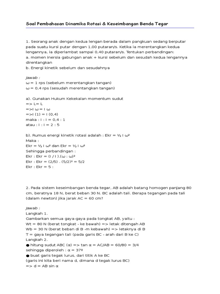 Pengertian Gerak Rotasi Kinematika Dan Dinamika Rotasi Momen Gaya Inersia Kesetimbangan Benda Tegar Contoh Soal Kunci Jawaban