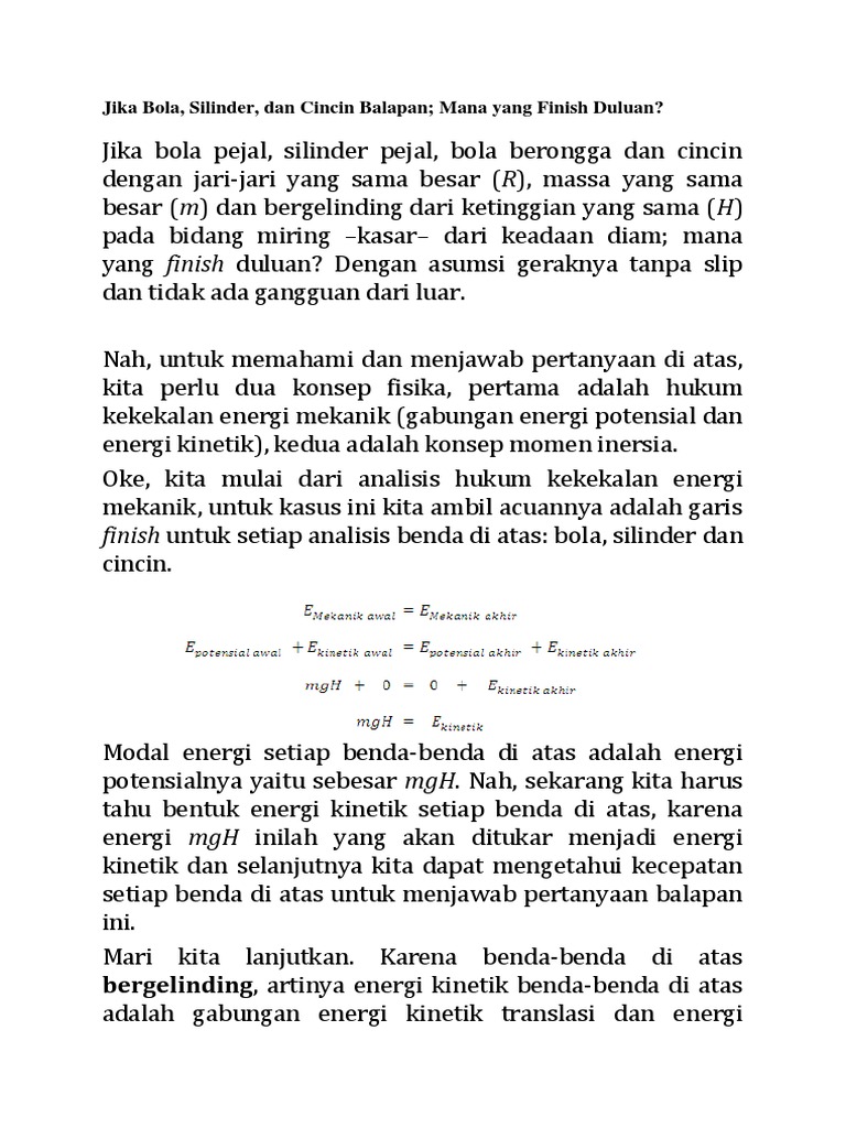 Contoh Soal Energi Kinetik Rotasi Menggelinding Dan Pembahasannya Soalfismat Com