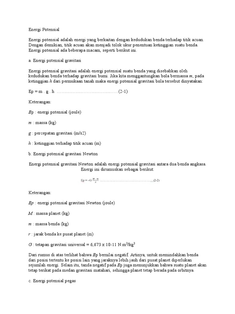 Energi Kinetik Potensial Mekanik Rumus Penjelasan Contoh Soal