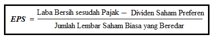Rumus eps. Rumus eps ada banyak sekali tolok ukur bagi seorang investor di pasar modal. Earning per share ini dapat dinyatakan dengan rumus eps dibawah ini. Rumus pertama menggunakan total saham beredar untuk menghitung eps namun dalam praktiknya para analis dapat pula menggunakan rata rata tertimbang saham yang beredar.