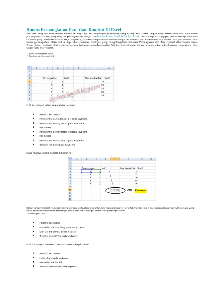 Cara Menggunakan Rumus Kuadrat Akar Kuadrat Pangkat Dan Akar Pangkat Pada Microsoft Excel Youtube