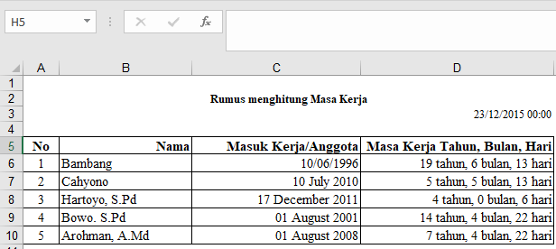Menghitung Masa Kerja Di Excel Pelatihan Kursus Microsoft Excel Terbaik
