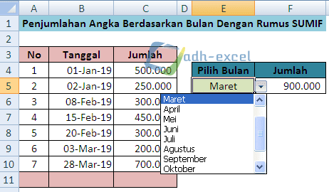 Menjumlahkan Angka Berdasarkan Pilihan Bulan Dalam Dropdown List Dengan Menggunakan Rumus Excel Sumproduct Adhe Pradiptha