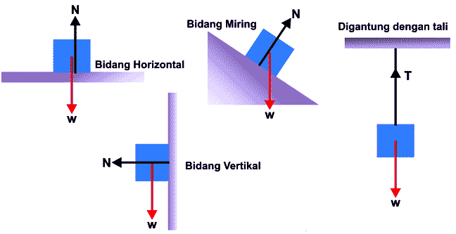 Posted in rumus fisika tagged jenis gaya rumus gaya sifat gaya. Perhatikan gambar gaya berat pada bidang horizontal di atas. Berikut ini merupakan kumpulan rumus gaya normal pada dinamika translasi di dalam berbagai kondisi yang umum dibahas di dalam soal fisika tentang gaya normal.