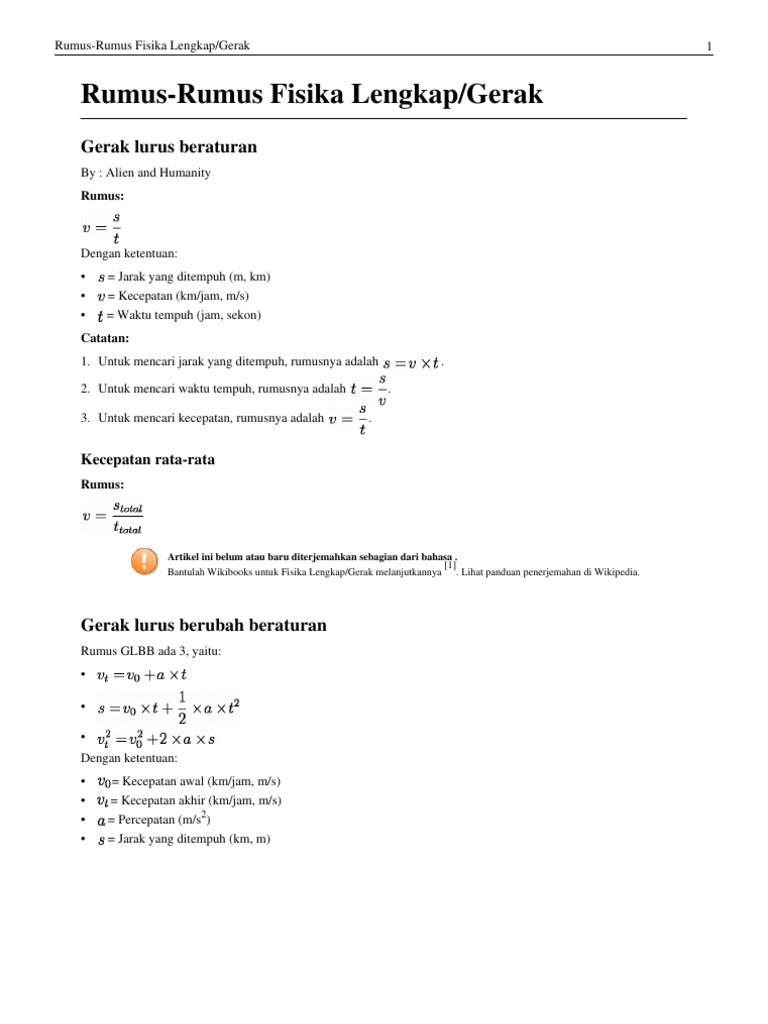 Rumus Rumus Fisika Lengkap Gerak Wikibuku Bahasa Indonesia