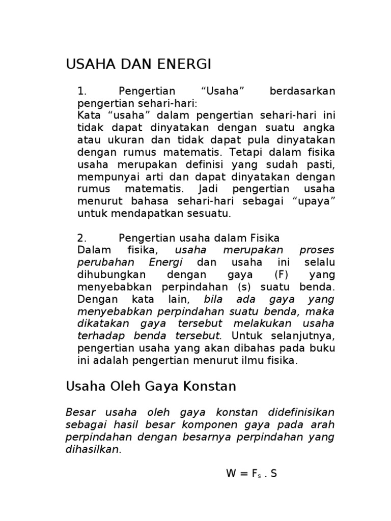 Rumus Usaha Dan Cara Menggunakannya Soal Fisika