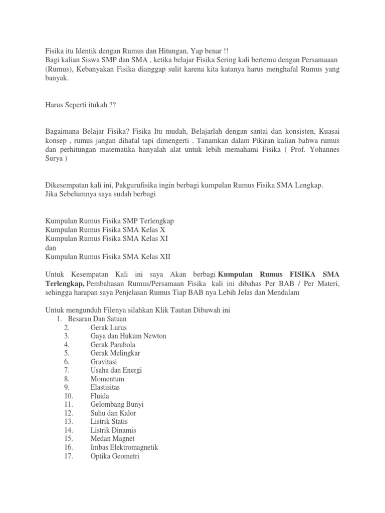 Jual Buku Buku Saku Pintar Fisika Kumpulan Rumus Dan Aplikasi Sma Ma Kelas 10 11 12 Oleh Tim Mitra Cendekia Gramedia Digital Indonesia