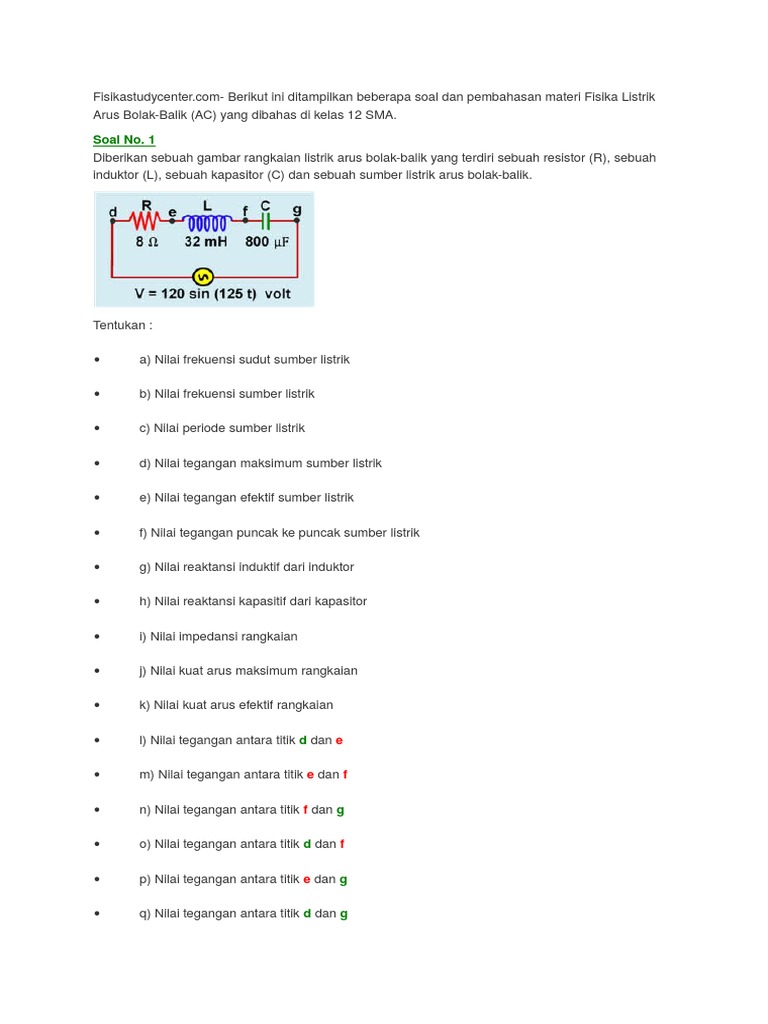 Contoh Soal Dan Pembahasan Rangkaian R L C Fokus Fisika