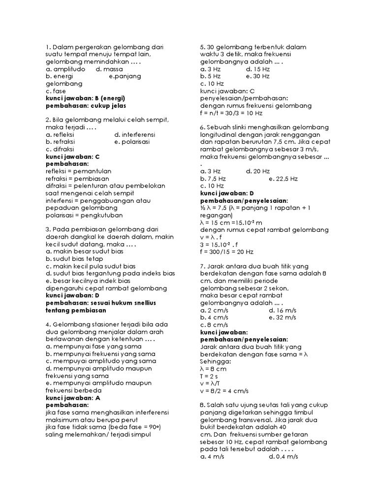 Persamaan Simpangan Gelombang Harmonik Berjalan Gurumuda Net