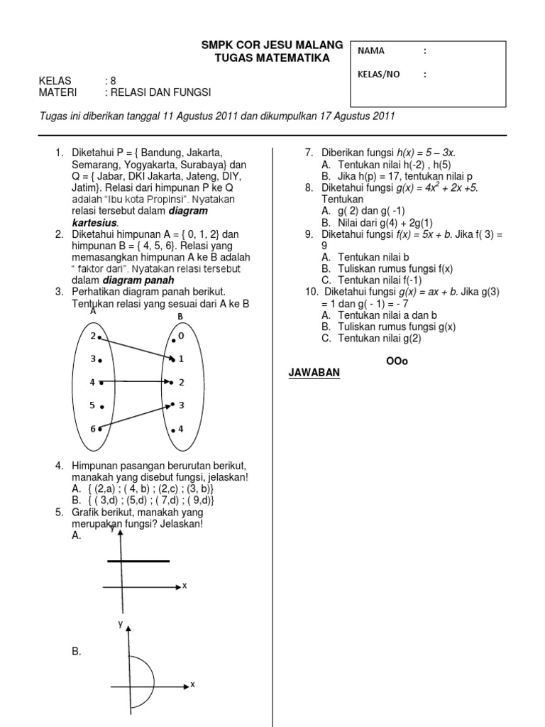 Relasi dari himpunan a ke himpunan b disebut fungsi atau pemetaan jika dan hanya jika setiap anggota himpunan a berpasangan dengan tepat satu anggota himpunan b. A b dengan g 1 a 2 b 3 b. Misalny f adalah fungsi yang memtakan dari a ke b maka fungsi tersebut ditulis.