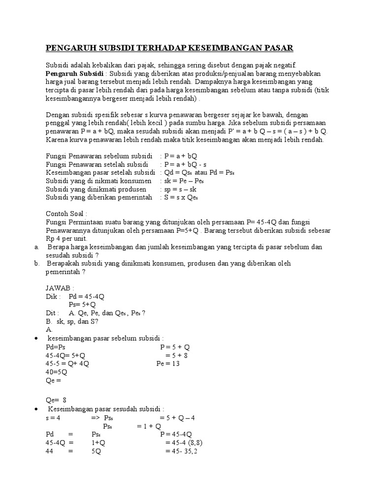Matematika Bisnis Contoh Soal Subsidi Fungsi Permintaan Dan Fungsi Penawaran Sesuatu Barang Ditunjukkan Oleh Persamaan Qd 10 P Dan Qs Ppt Download