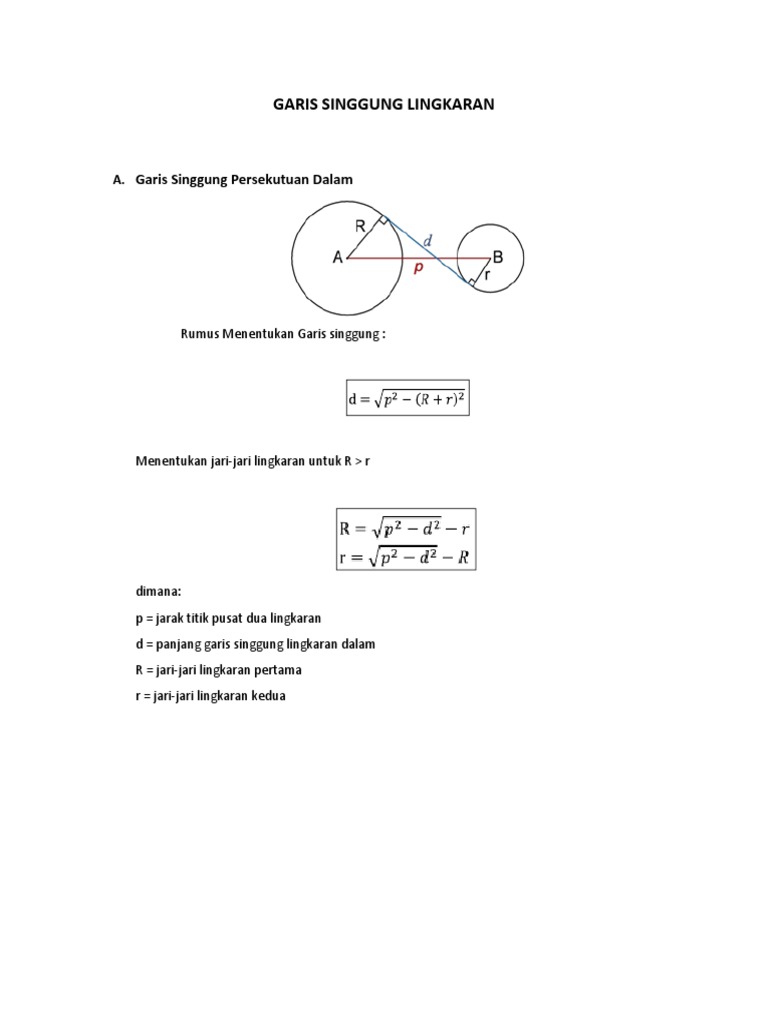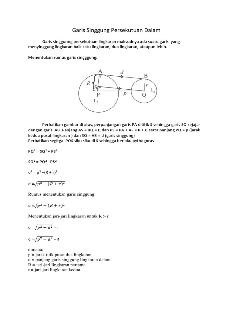 Menemukan Panjang Garis Singgung Persekutuan Dalam Lingkaran Pendidikan Matematika