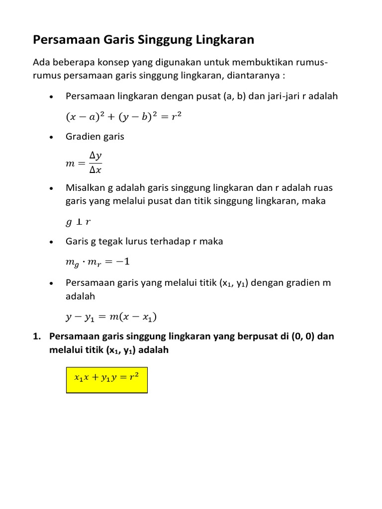 Persamaan Garis Singgung Lingkaran Dengan Garis Singgung Sehingga Persamaan Garis Singgung Pada Titik Pdf Document