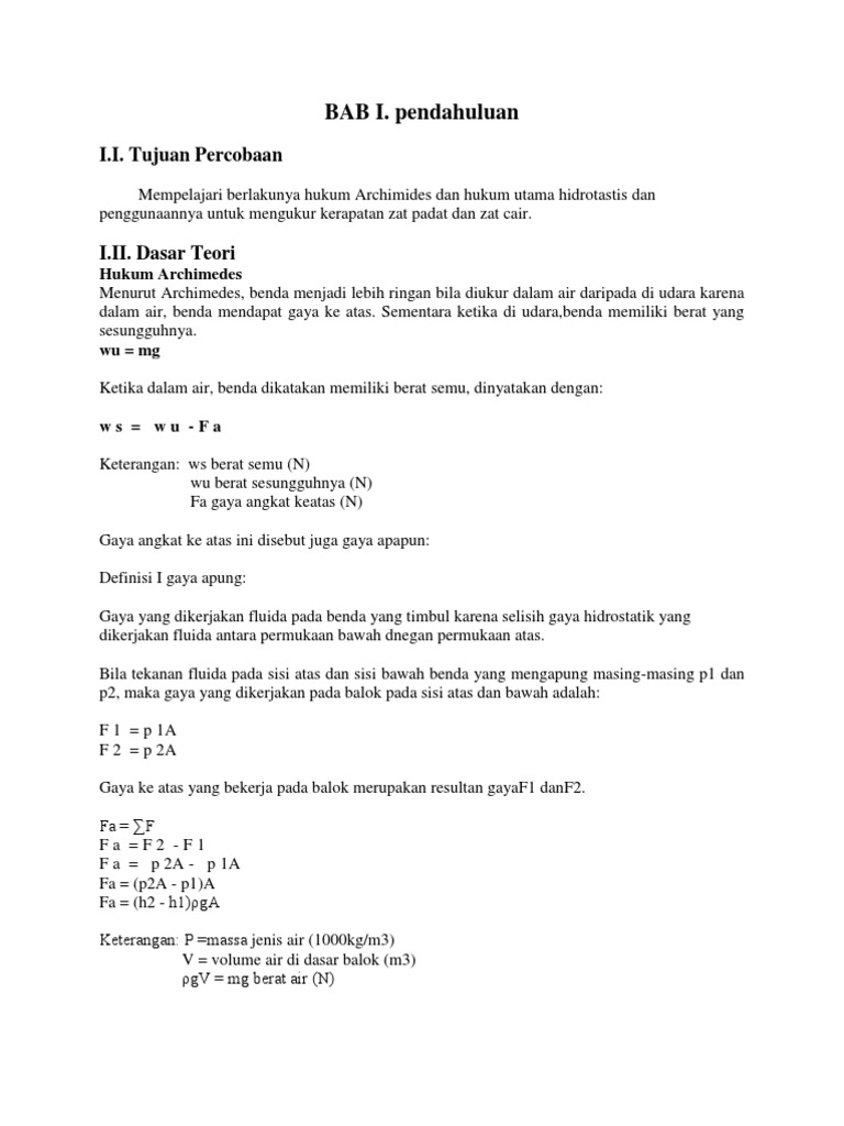 Ketika sebuah benda berada di dalam air air yang berada di bagian atas medorong benda ke bawah dan air yang berada di bagian bawah mendorong benda ke atas. Fa ra va g. Hukum archimedes benda tenggelam dengan gaya archimedes benda melayang dalam air dan hukum archimedes benda terapung.