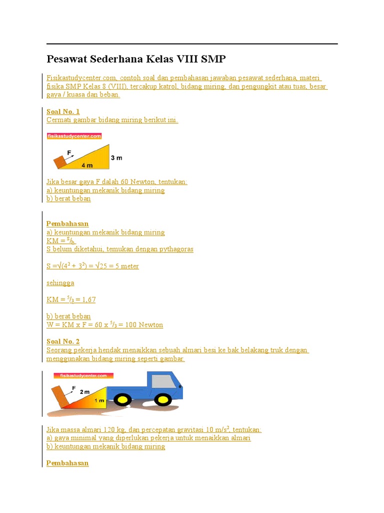 Rumus Bidang Miring Keuntungan Mekanis Gambar Dan Contoh Soal