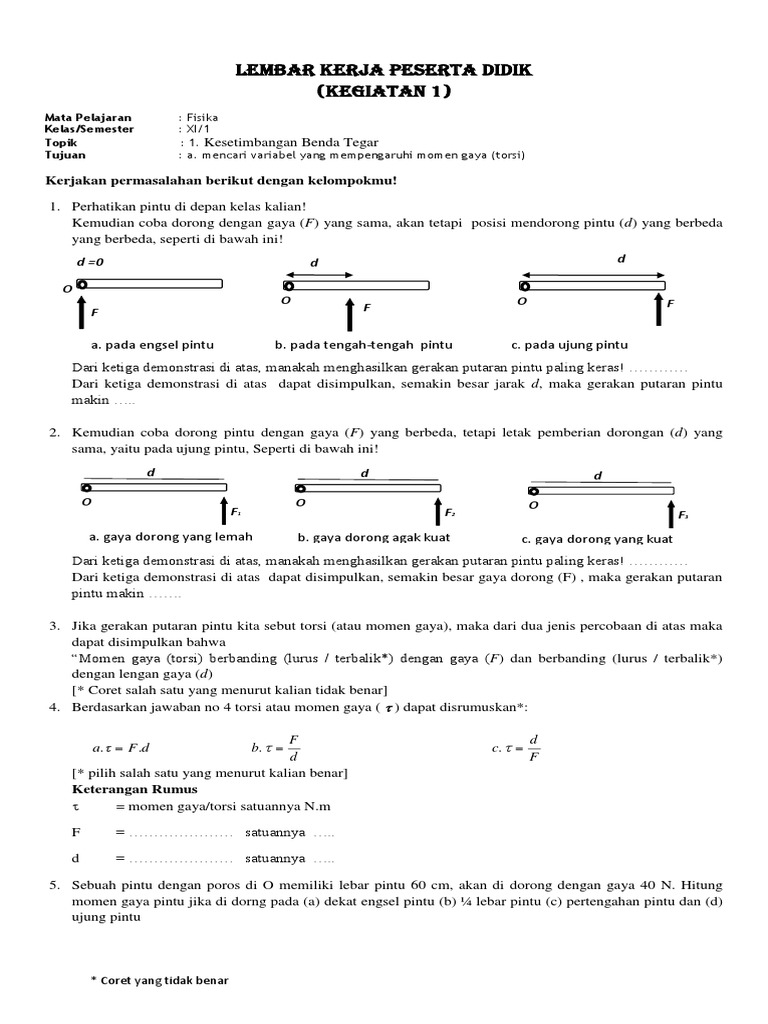 Fisika Kelas 11 Momen Gaya Dan Misteri Gagang Pintu