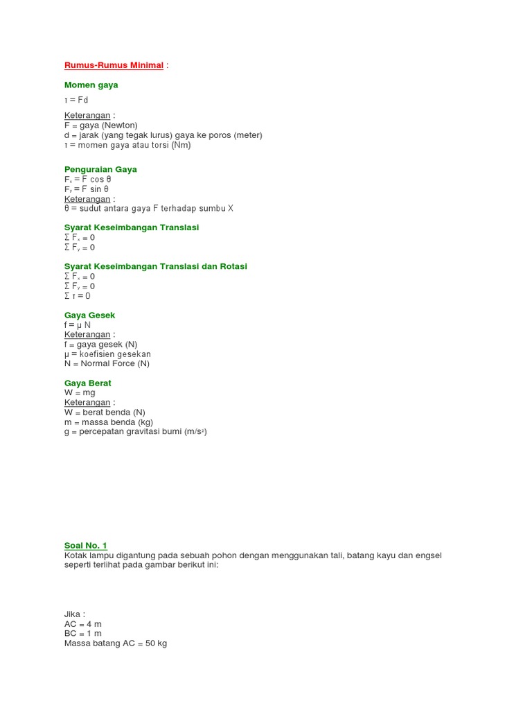 Kumpulan Soal Dan Pembahasan Kesetimbangan Benda Tegar